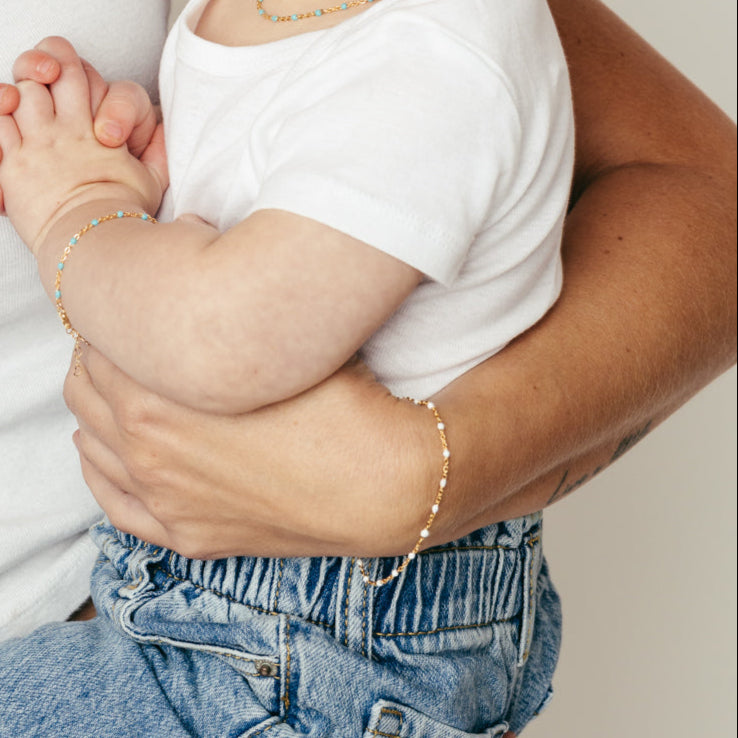 The Mama Darling Bead Bracelet is playful, featuring a strand of vibrant enamel beads finished with golden details. Lightweight and fun to stack, it’s a cheerful everyday piece that pairs perfectly with the matching Mini bracelet.